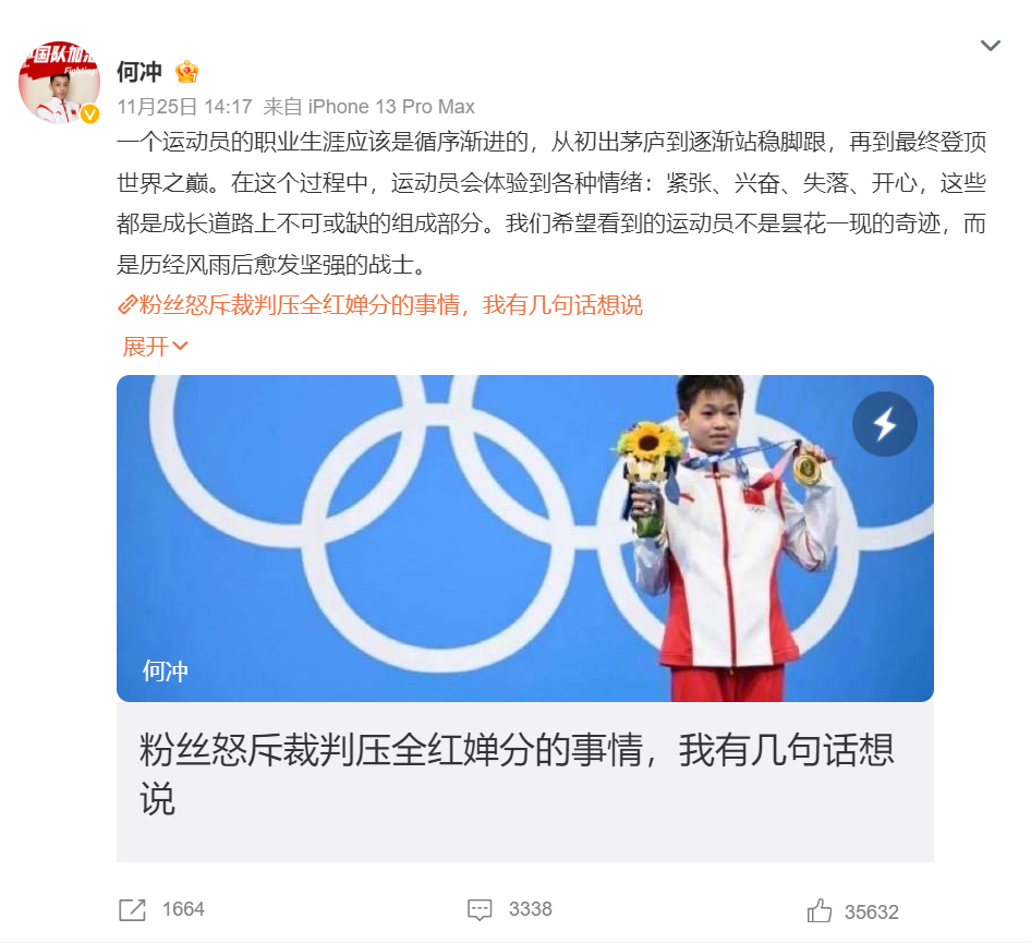 陈芋汐(中)和全红婵(左)一直是良性竞争,彼此促进。新华社记者 肖艺九 摄 与此同期,酬酢平台也出现了许多关联斟酌视频,致使滋生出了对陈芋汐和陈芋汐家东说念主的袭击…… 电竞濒临饭圈的不良行为,奥运跳水冠军、全红婵的湛江老乡、中国跳水名宿何冲看不下去了——25日,何冲在个东说念主微博发表长文,叱咤饭圈行为,驳倒了“压分”的谬论。 原文如下—— 亚博彩票网这个事情属于把我看乐了,知说念的是业余爱重者看两位跳水通顺员跳水,不知说念的,还以为是在看“我的孩子”玩变装党争呢。 哦不好道理,看漫画齐没这样顶点,毕竟对纸片东说念主有个偏疼那还算平方,这闹下去的架势依然是饭圈了吧。 因为某个孩子稀奇属目就成了我方的身心投射,然后以为剧情就应该围着我方可爱的变装转,就少许亏齐吃不了,略略吃瘪就怪外界环境怪客不雅要素,致使启动怀疑是不是有东说念主从中作梗了。我可爱的偶像输了,是以对方即是强大到不错操控比赛?哦,从2021年起,那么多世界大赛,全红婵齐是被自家东说念主针对是吧?你动动脑子这可能么? 那么我就直说了——若是你真稀奇可爱全红婵,就少发点这种奇怪的东西,对你好,对她也好。 皇冠信用盘平台只可说,在咱们这个快节拍的社会中,信息时刻的当先依然使咱们能够即时获取委果任何信息,这事的公正即是全球能战役到一些冷门比赛的更多信息。坏处嘛,即是泥沙俱下,总能培养起奇怪的东西。再跟着自媒体的添枝接叶和自我清晰,年青一代在海量信息的冲击下,未免会受到无意正确的倡导影响判断。临了,饭圈就成为了一股不成小觑的力量,原来属于文娱界的景色,如今也浸透到了体育界限。这是善事么?这尽头可怕。 欧博网址饭圈文化所带来的心情化和个东说念主宝贵可能对通顺员产生不正面的影响。归根结底,许多年青的粉丝将我方可爱的明星或通顺员置于一个几近无缺的地位,当这些偶像未能取得预期的收货时,这些粉丝常常会寻找外部要素来为偶像辩白。在跳水等体育姿首中,裁判的评分红为了诸多争议的焦点。有些东说念主在不充分了解姿首法例和评分圭臬的情况下,很容易被那些误导性的言论所影响,比如说此次,就有全红婵的顶点粉丝认为,选手的失利恼恨在裁判打低了分数。 皇冠客服飞机:@seo3687但我现在要告诉你,这种念念维样式是十分危境的。滥觞,它褫夺了通顺员濒临挑战和失败时进行自我反省和学习的契机。